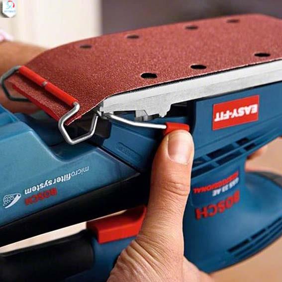 این دستگاه دارای ابعاد کفی 93*230 میلیمتری از نوع easy fit که راحتی سنباده پشت کرکی به آن متصل می شود. gss 23 ae بوش از سیستم ماکرو فیلتر بهره می برد که باعث می شود در محیط گرد و غبار کمتری ایجاد شود.